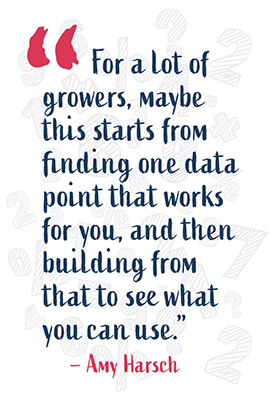 “For a lot of growers, maybe this starts from finding one data point that works for you, and then building from that to see what you can use,” says Harsch. “Take it piece by piece, because truly you will find it overwhelming if you take on too much at once.” It might be worthwhile to plan to add a little bit of new technology each year.